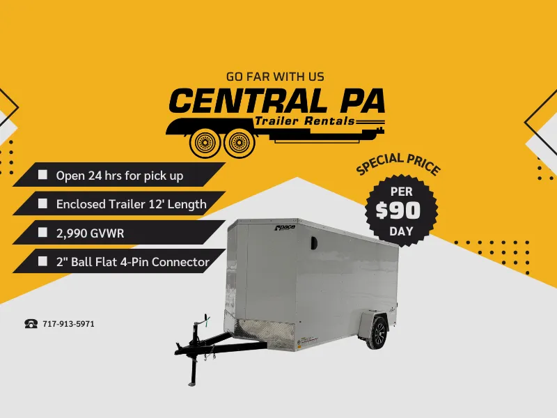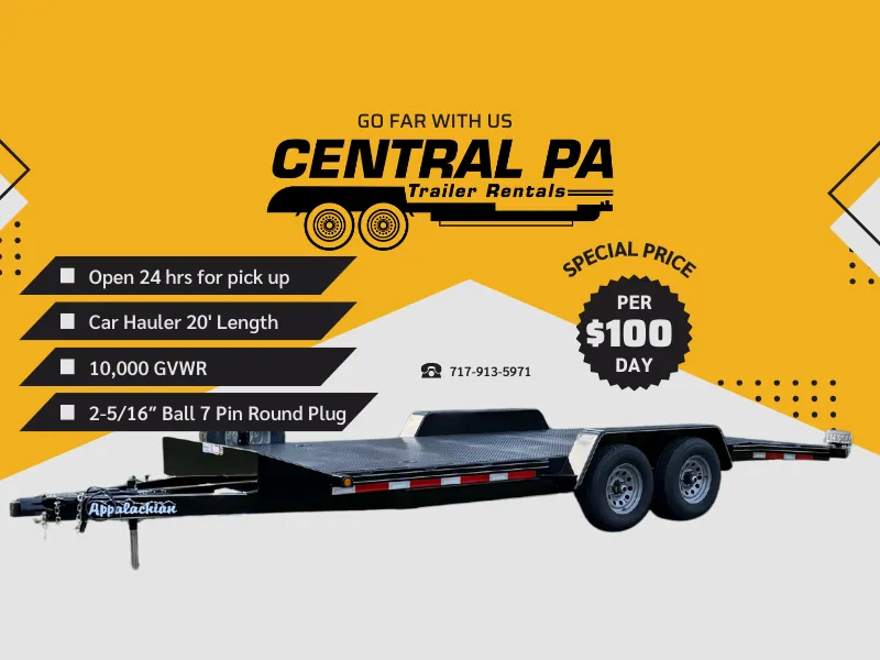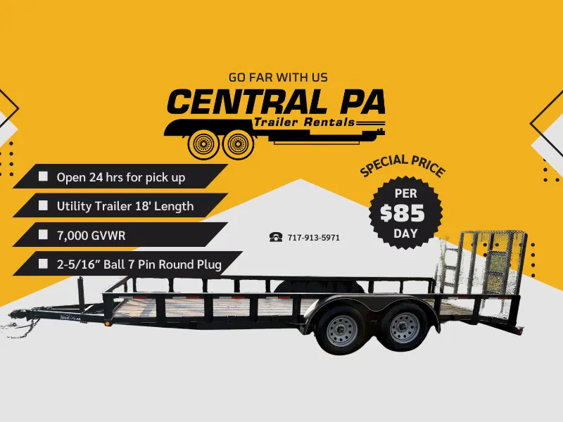 I was in a serious pinch to find a large trailer to rent. I found Central PA Trailer Rentals 2-3 pages down on my Google search. However, I was able to procure a very high quality trailer with plenty of straps/ tools/accessories, in less than 24 hours through them. I recommend them and will happily refer them to others.